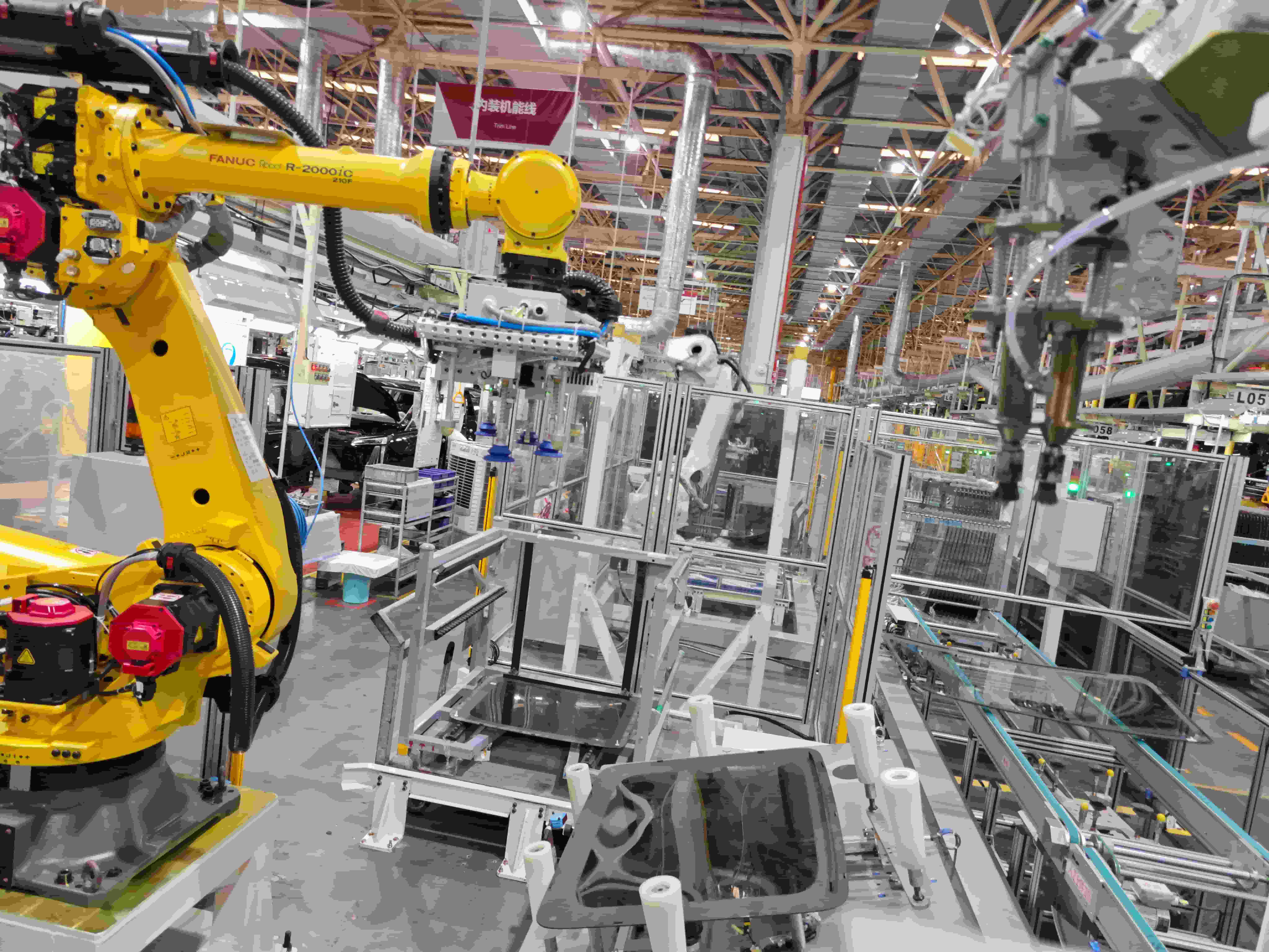 玻璃搬运机器人2台,玻璃装配机器人3台,车身底涂机器人3台,...