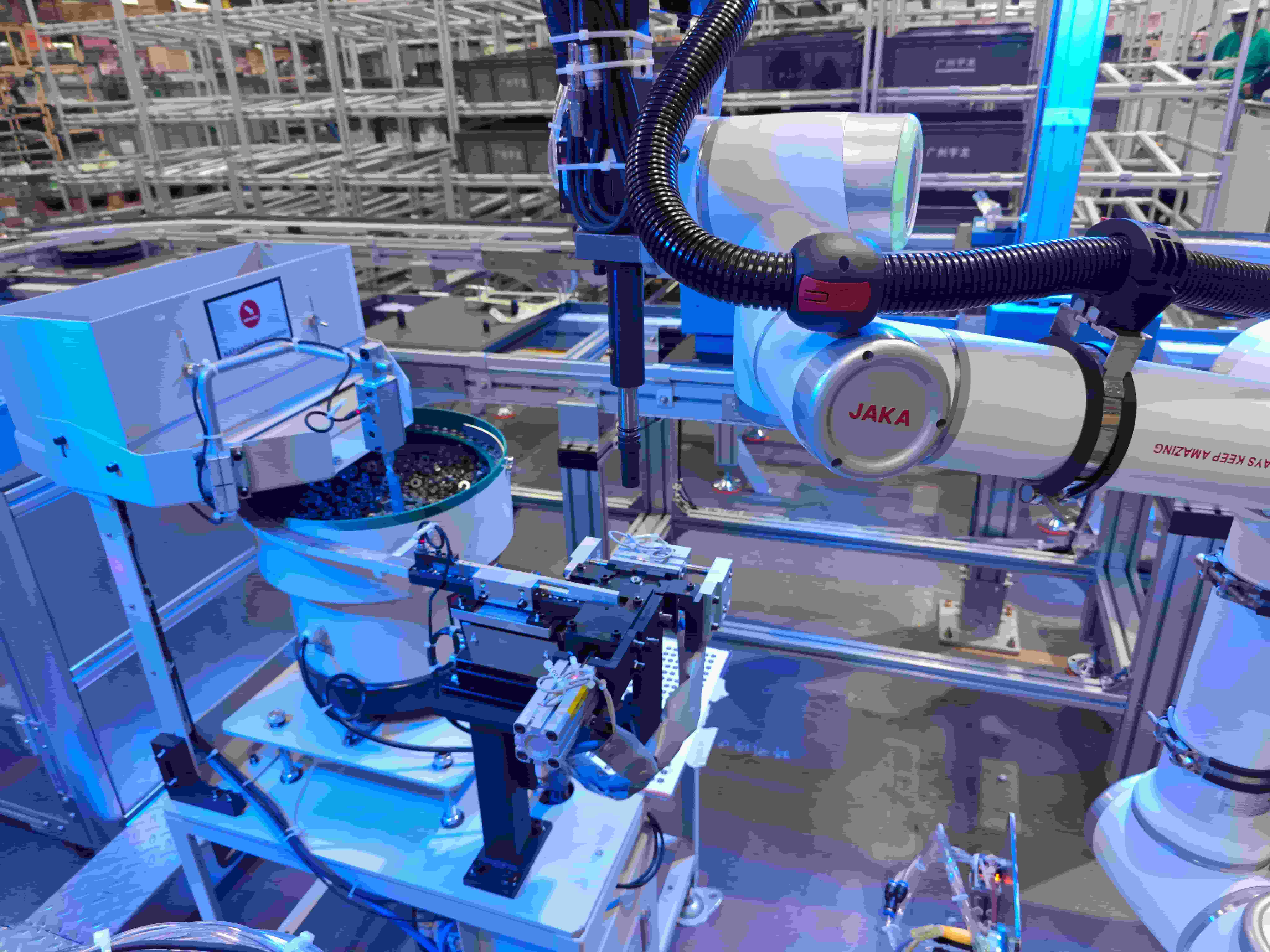 ECU通过输送线到达视觉引导抓取工位,由RI协作机器人将EC...